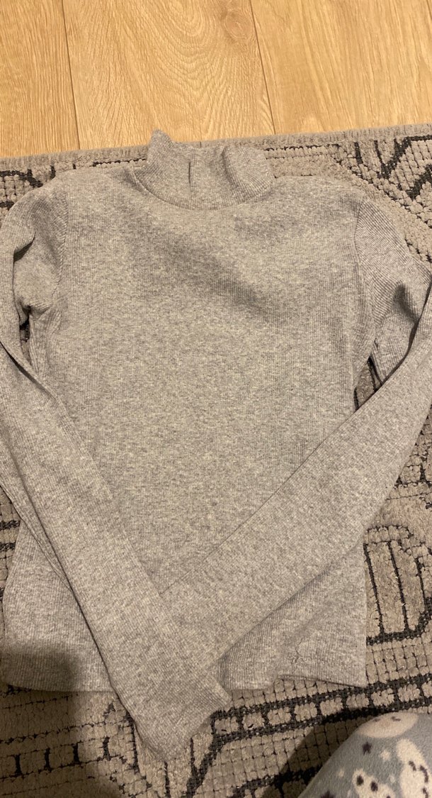 Gri renkte, uzun kollu ve boğazlı, yumuşak dokulu triko kumaştan yapılmış, vücuda oturan kadın kazak. Günlük kullanıma uygun sade tasarım.