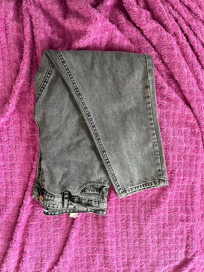 Gri renkli, bol kesim ve normal boyda denim pantolon. Rahatlığı ve trend sokak stili ile günlük kullanıma uygun. MARKA TEMSİLİ