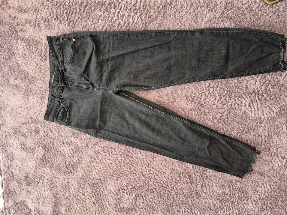 Kadınlar için bol kesim gri kot pantolon, kadife detaylıdır. Günlük kullanıma uygun, rahat ve normcore tarzda midi boy pantolondur.