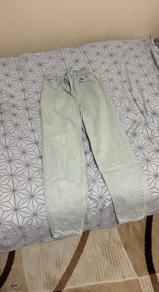 Gri renk bol kesim midi boy kot pantolon, kemerli ve desen içermeyen normcore tarzda, günlük kullanıma uygun.