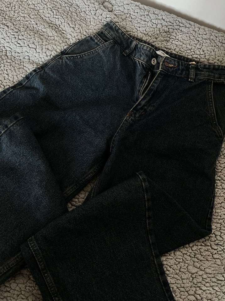 Kadınlar için bol kesim, normal midi boy kot pantolon. Denimden yapılmış, kürk detaylı, koyu gri renkte ve sade tasarımlı, rahat ve normcore tarzda günlük kullanıma uygun.