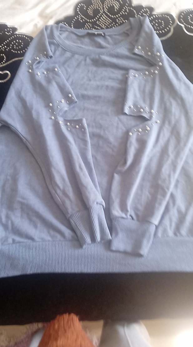 Gri Kadın boncuk süslemeli Pamuklu Uzun Kollu swith