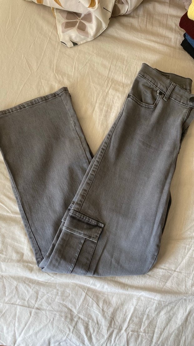 Gri renkte, bol kesim ve midi boyda kadın denim jean. Günlük kullanıma uygun, sade ve şık bir normcore tarz sunar.