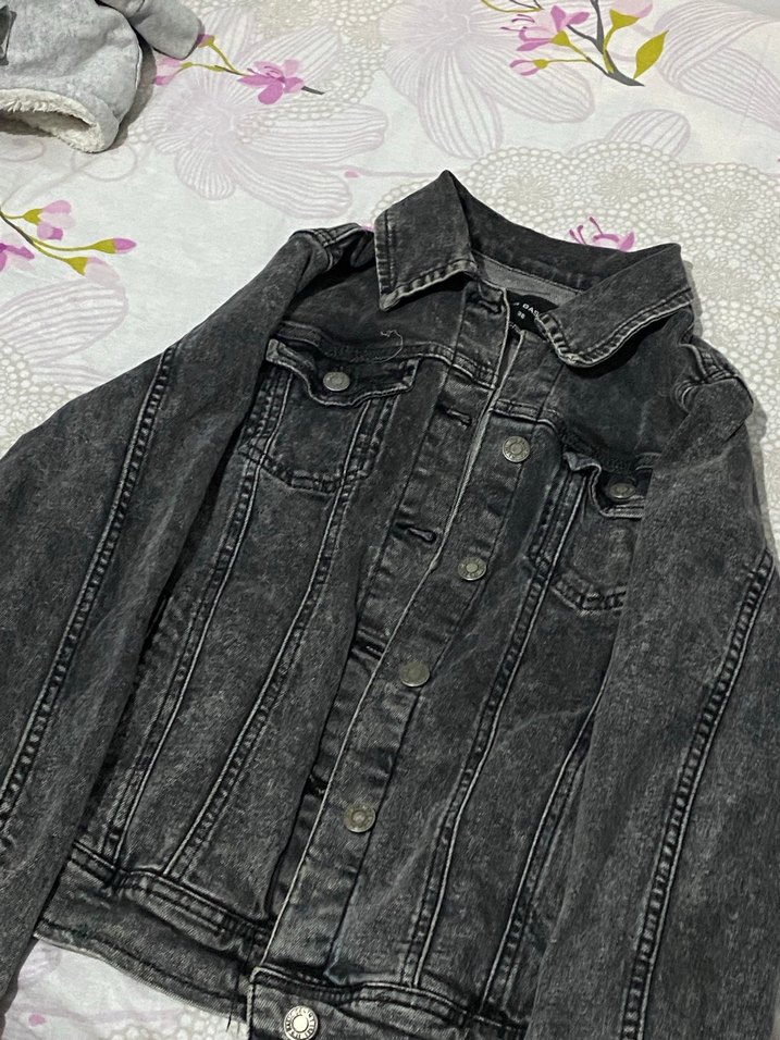 Gri renkli kadın denim ceket, bol kesim, uzun kollu ve yaka detaylıdır. Düğmeli ön kısmı ve normal uzunluğuyla günlük kullanıma uygundur. Yırtık detayi vardir arkada dar kesim