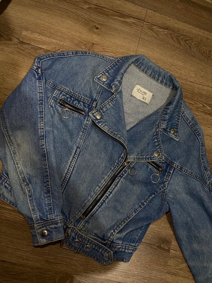 Gri renkli denim ceket, fermuarlı ön kısmı ve kesilmiş yakasıyla salaş bir görünüm sunar. Strappy kollu ve normal boydadır, günlük kullanıma uygundur.
