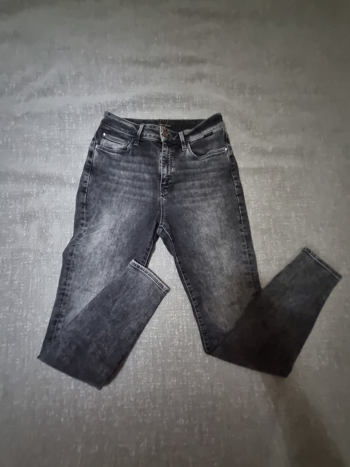 Bu gri renkli dar kesim Jean, sade bir tasarıma sahiptir. Günlük kullanıma uygun rahat ve şık bir sokak stili sunar.
