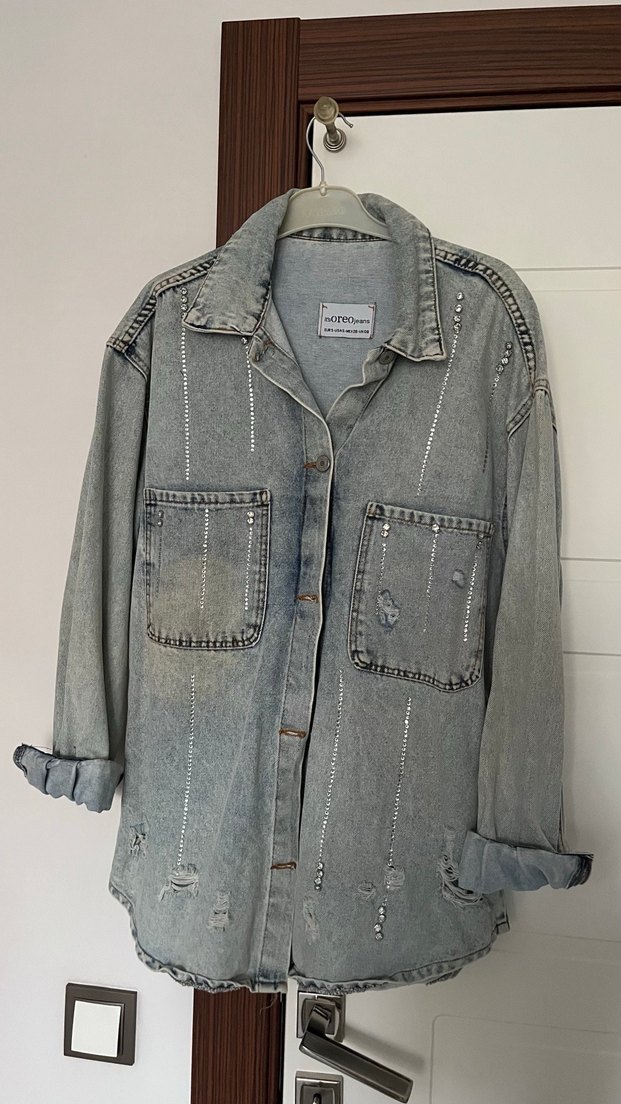 Gri renkte, düğmeli, cep detaylı, regular fit kadın denim ceket. Notched lapel yakalı, uzun kollu, midi boyda, günlük kullanıma uygun rahat bir model.
