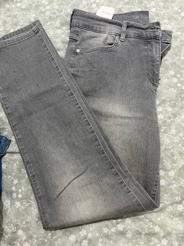 Gri renkte, normal boy ve rahat kesime sahip kadın denim jean pantolon, günlük kullanıma uygun sade ve şık bir modeldir.