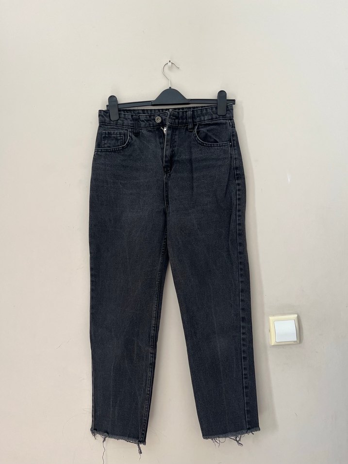 Gri renkte, normal boy ve regular fit kesime sahip kadın denim kot pantolon. Buckle detaylı, minimalist ve günlük sokak stili için uygun .
