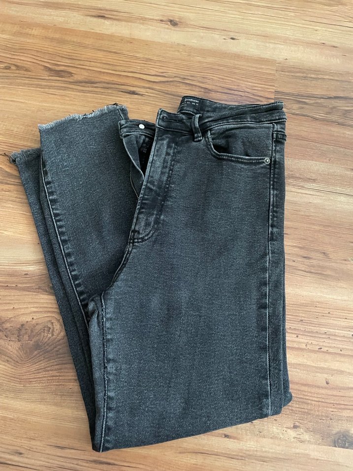 Gri renkte,midi boy, desen içermeyen, günlük kullanıma uygun kadın jean pantolon.