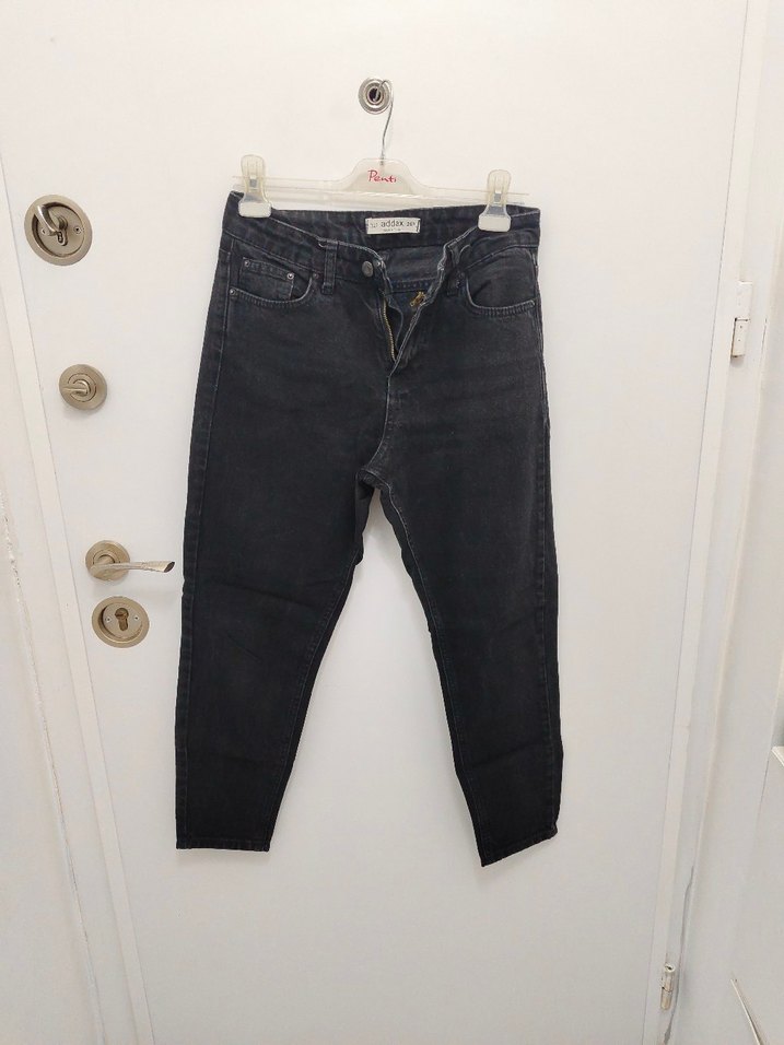 fermuari bozuk Gri renk, regular fit, kemerli bel tasarımlı kadın denim pantolon. Midi boyda, desen içermeyen, günlük kullanım için uygundur.