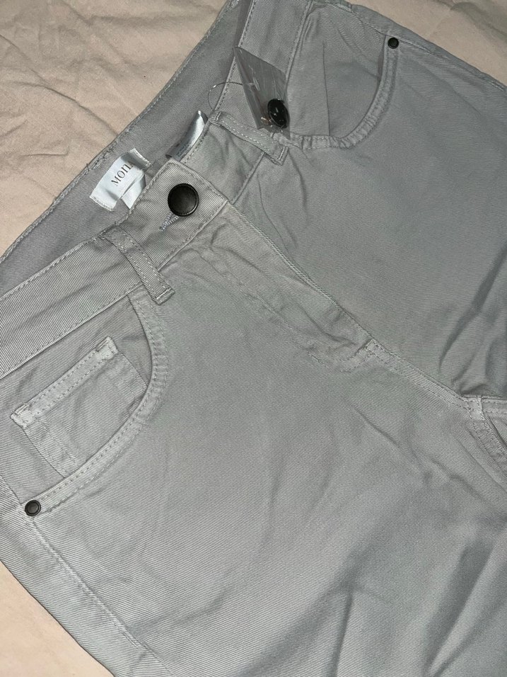 Gri renkte, rahat kesim ve kadın denim pantolon, gündelik kullanıma uygun sade ve şık bir tarz sunar.