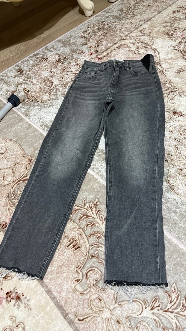 Gri renk,kadın denim pantolon, günlük kullanım için uygun. iade yoktur bel kısmında lastik detayları vardır esnemeye uygundur boru paça