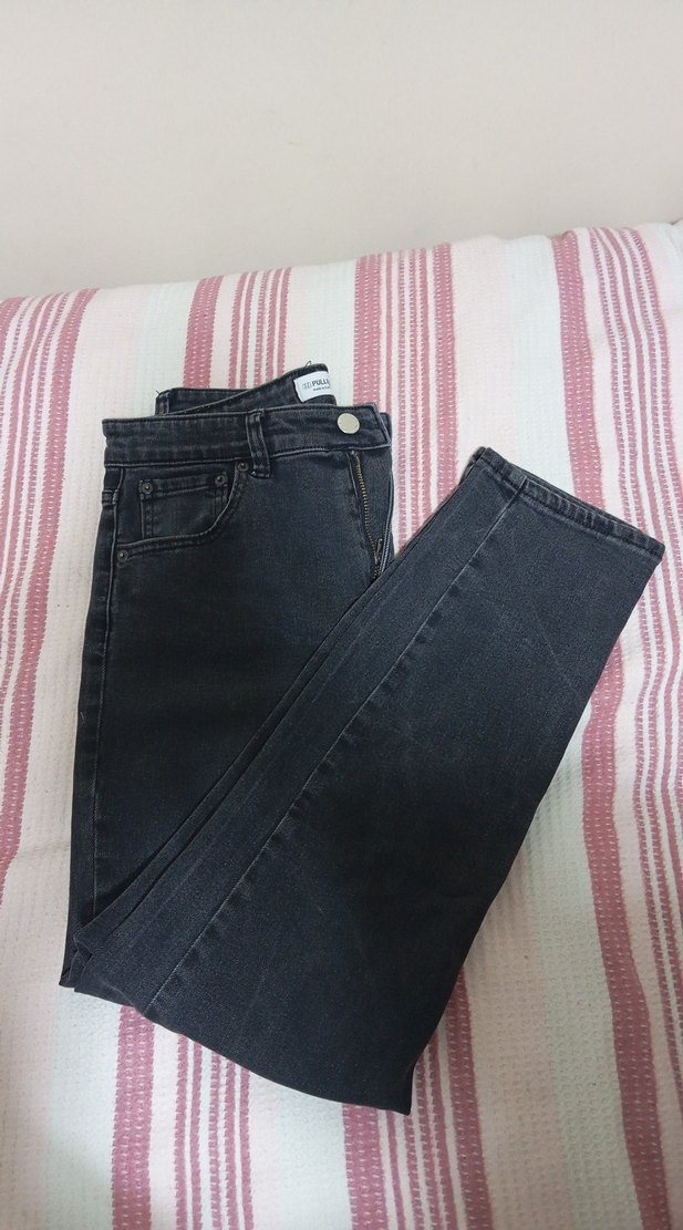 Gri renkte, midi boy ve regular fit kesime sahip kadın denim pantolon, günlük kullanım için zahmetsiz şıklık sunar. sayılı giyildi arkadaki deformesi yüzünden satıyorum tesettürlü kişiler için sıkıntı olmayacaktır