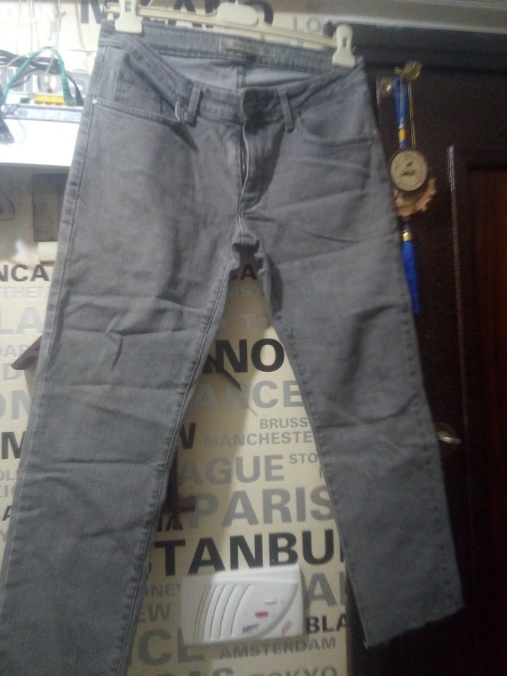 Gri denim kumaştan, midi boy ve regular fit kesime sahip, günlük kullanıma uygun rahat ve şık kadın pantolon.