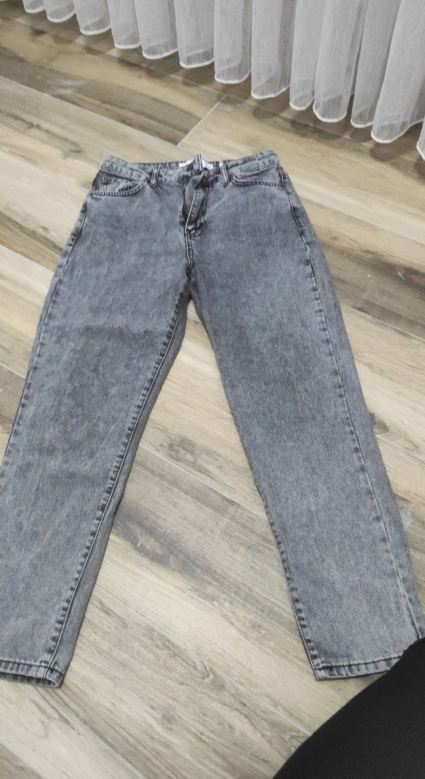 Gri renkli denim kumaştan yapılmış, regular fit ve midi boyda, günlük kullanıma uygun rahat ve şık kadın pantolonu.