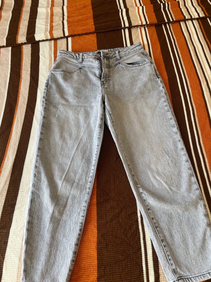 Salaş kesim, gri renkli denim midi boy kadın jean. Desensiz ve rahat, günlük sokak stili için uygun, zahmetsiz şıklık sunar.