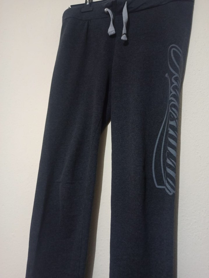 Gri renkte, bol kesim, fermuarlı cepleri olan normal boyda kadın denim sweatpants, günlük kullanım için uygundur.
