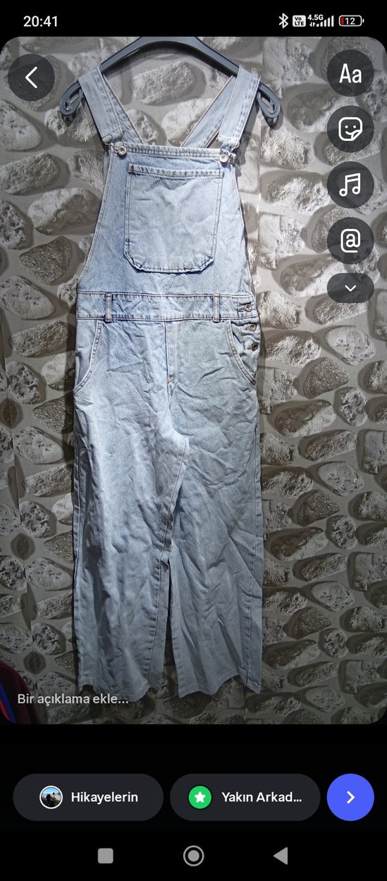 Gri renkte, bol kesim, kemerli ve kolsuz uzun denim salopet, günlük rahat sokak stili için uygundur.