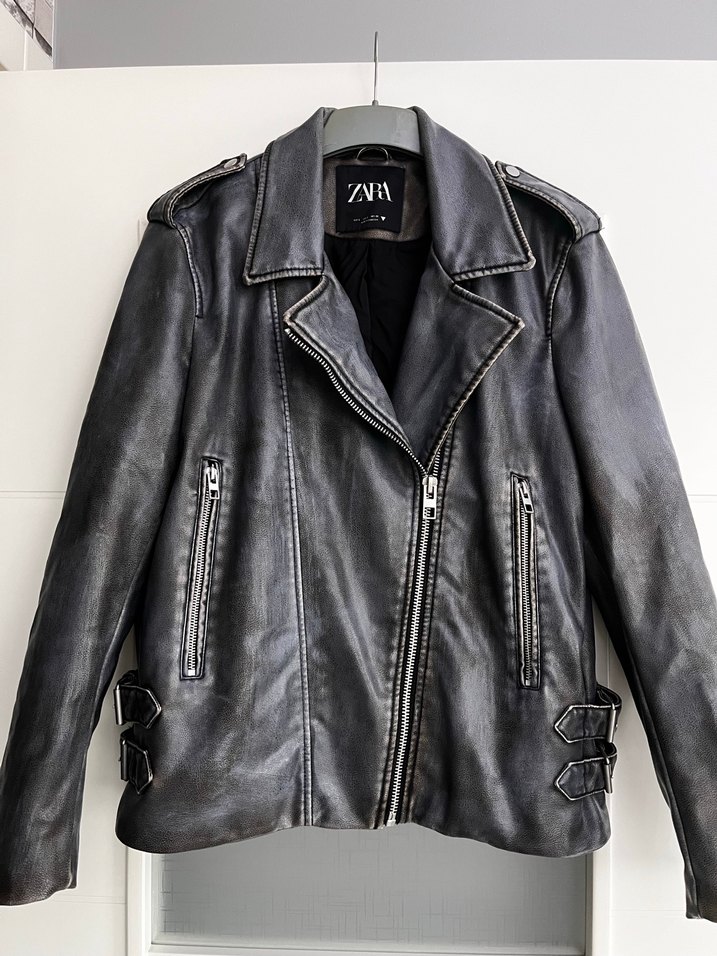 Zara orijinal deri ceket 2-3 defa giyildi sıfırdan farksız S beden fakat geniş kalıp 70-75kg olur iki koltuk arası 55cm boyu 64cm #zara