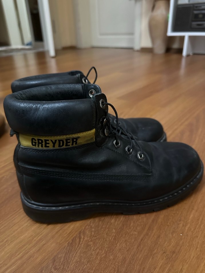 Gri renk, wedge topuklu, tokalı kadın botu. Kauçuk malzemeden, günlük kullanıma uygun. Marka: GREYDER.
