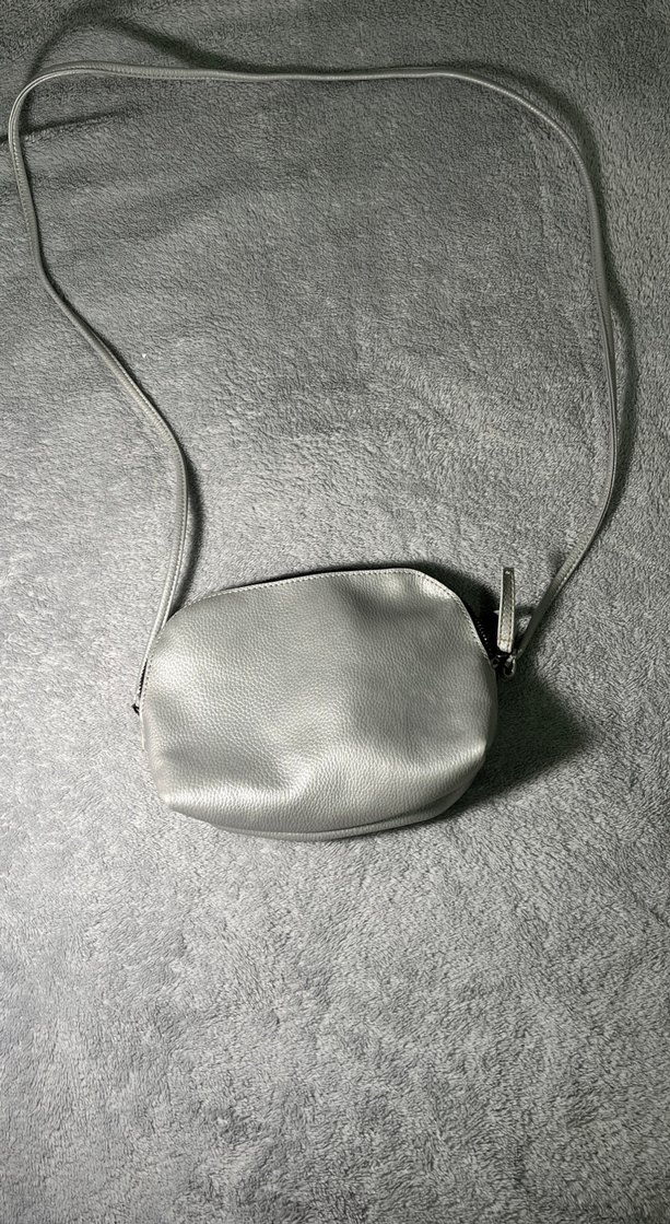Gri deri çapraz çanta, fermuarlı ve minimal sade tasarıma sahip, günlük kullanım için uygundur.