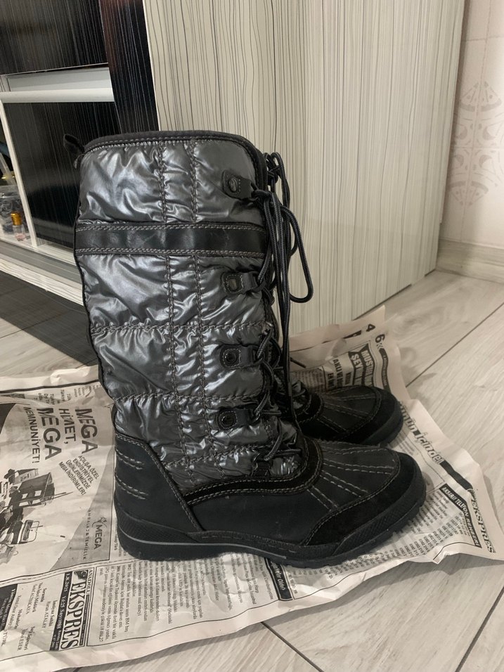Gri renkte, bağcıklı ve dolgu topuklu kadın botları kauçuk malzemeden, rahat ve gotik tarzda günlük kullanım için uygundur. Bir iki kez kullandım içi tüylü sorunu yok