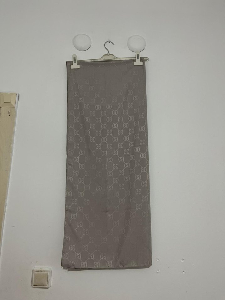 Gri renkte, yumuşak sentetik kumaştan yapılmış, drapeli tasarıma sahip kadın şalıdır. Minimalist ve mütevazı tarz sunar.