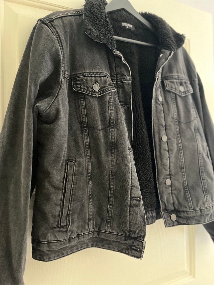 Gri renkte, düğmeli önü ve kesimli yakası olan denim ceket. Salaş kesimi ve uzun kolludur, günlük sokak stili için uygundur. Desensiz ve normal boydadır.