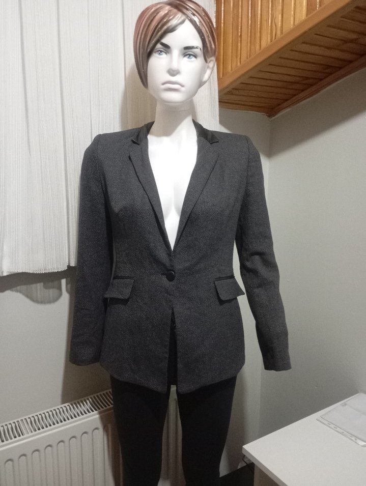 Gri renkli, düğmeli, normal boy midi blazer ceket. Uzun kollu, kesimli yakalı ve sentetik kumaştan üretilmiştir. Ofis için şık ve trend bir seçim S m bedene uyumlu