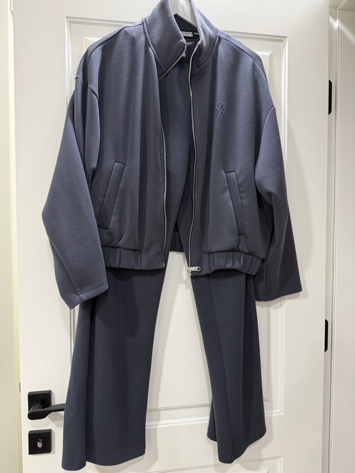 Yumuşak ve sıcak kumaştan, yüksek yakalı ve uzun kollu gri kadın midi eşofman takımı. Düzenli kesimi ve sade tasarımı ile ofis ve günlük kullanım için uygundur.✨