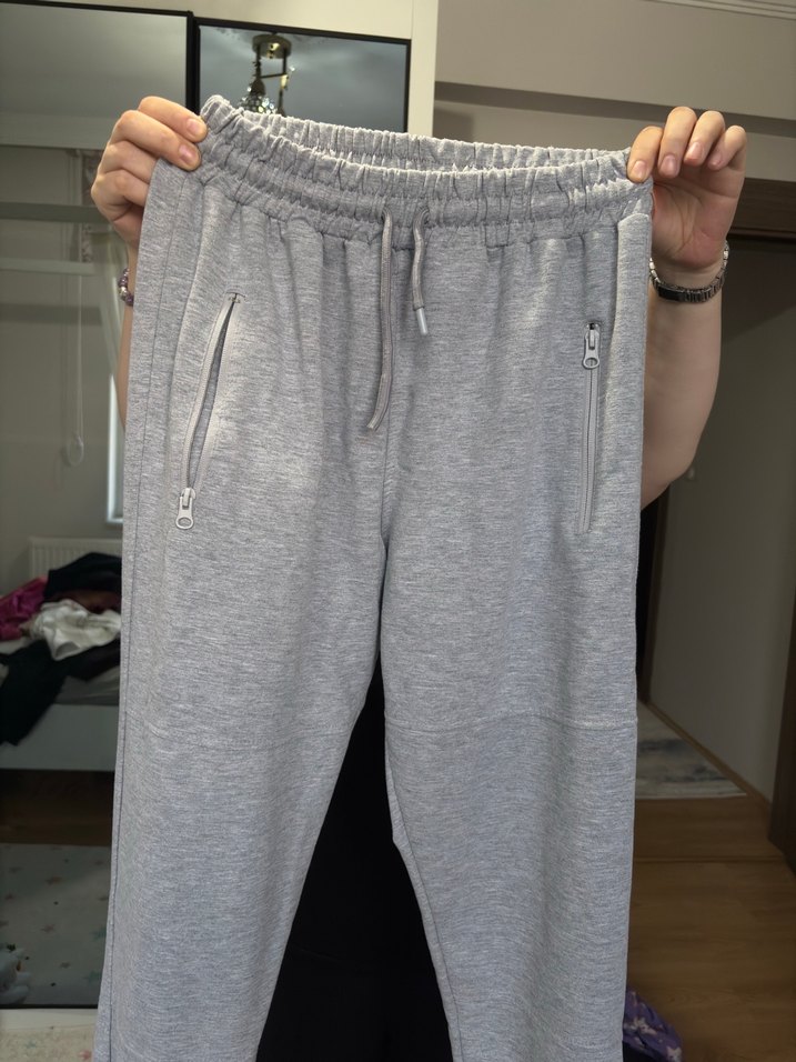 Gri renk, fermuarlı cepleri ve lastikli beliyle rahat kesim eşofman altı, yumuşak ve sıcak kumaştan üretilmiştir. Sokak stiline uygun.
