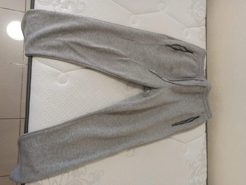 Gri renkli, keten kumaştan kadın fermuarlı eşofman, rahat kesim ve midi boyda, günlük ve sokak stiline uygun. yağ lekesi var cikartamadim.