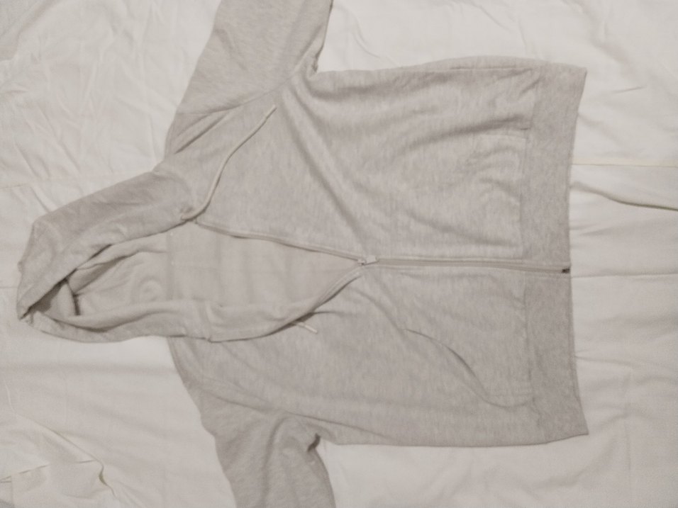 Gri renkli, fermuarlı ve uzun kollu kadın sweatshirtü. Salaş kesim ve normal boyda, günlük sokak stili için uygundur.