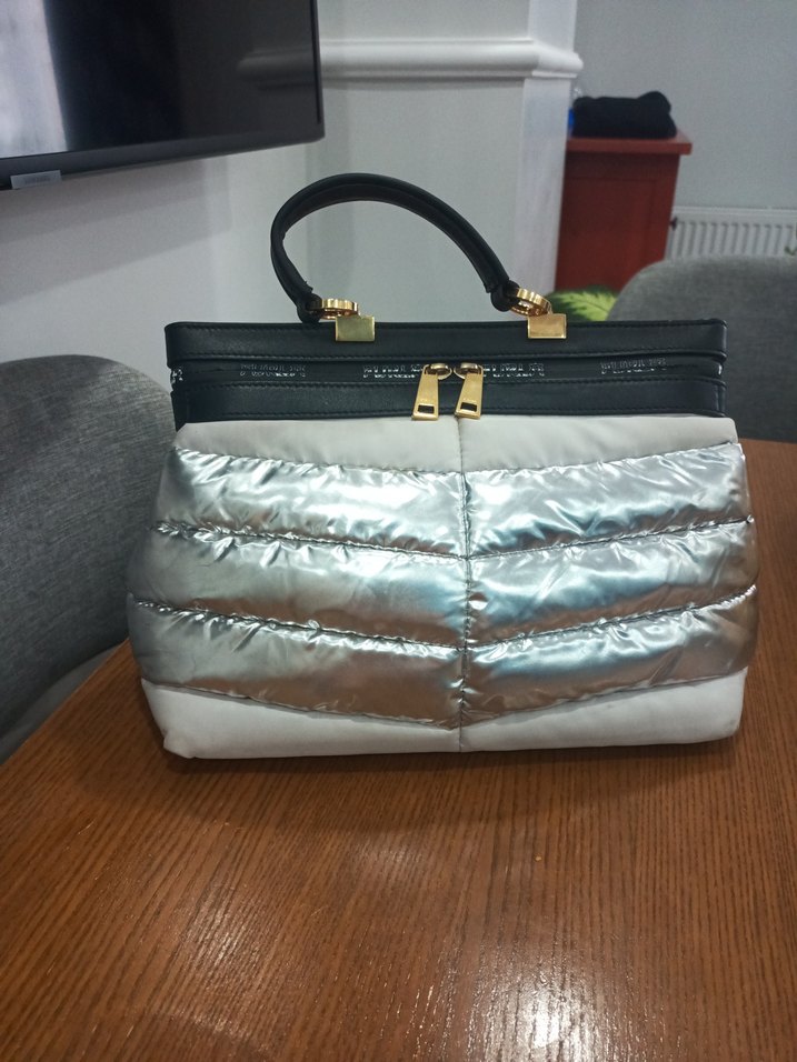 Gri renkte, fermuarlı kapamalı, sentetik kumaştan yapılmış kadın günlük çantası. Modern ve desensiz tasarımıyla şık bir görünüm sunar.