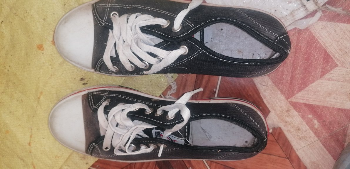 Ürün az kulanıldı tozlanmış sadece herhangi bir defosu yok Siyah renkte, düz kauçuk tabanlı, Velcro detaylı kadın sneakers, günlük sokak giyimine uygun tarzda.
