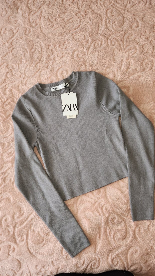 Gri Kadın İnce Örgü Kısa Kazak zara marka