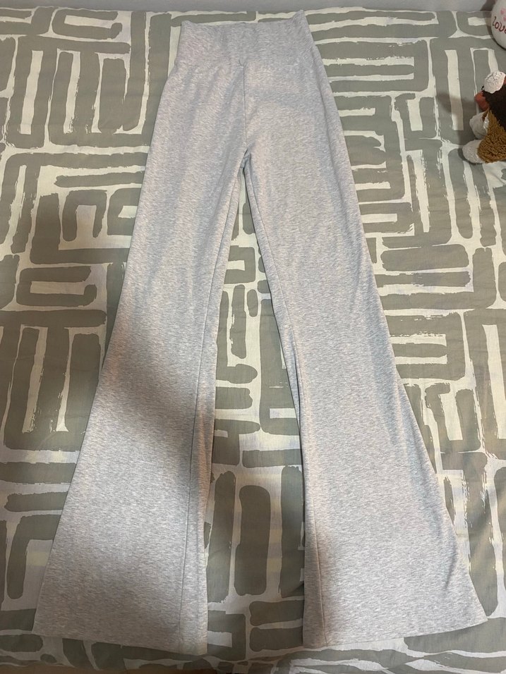 Gri, ispanyol paça, midi boy, sentetik kumaştan, sokak modasına uygun, rahat ve şık tayt.pacalari yere surtundugunden hafif kirli onun disinda tertemiz ve defosu yok.