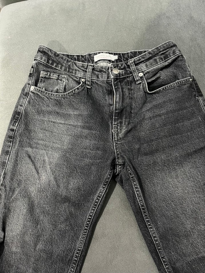 Gri renkte, kemerli detaylara sahip denim pantolon. Minimalist ve normcore tarzıyla günlük kullanıma uygundur.