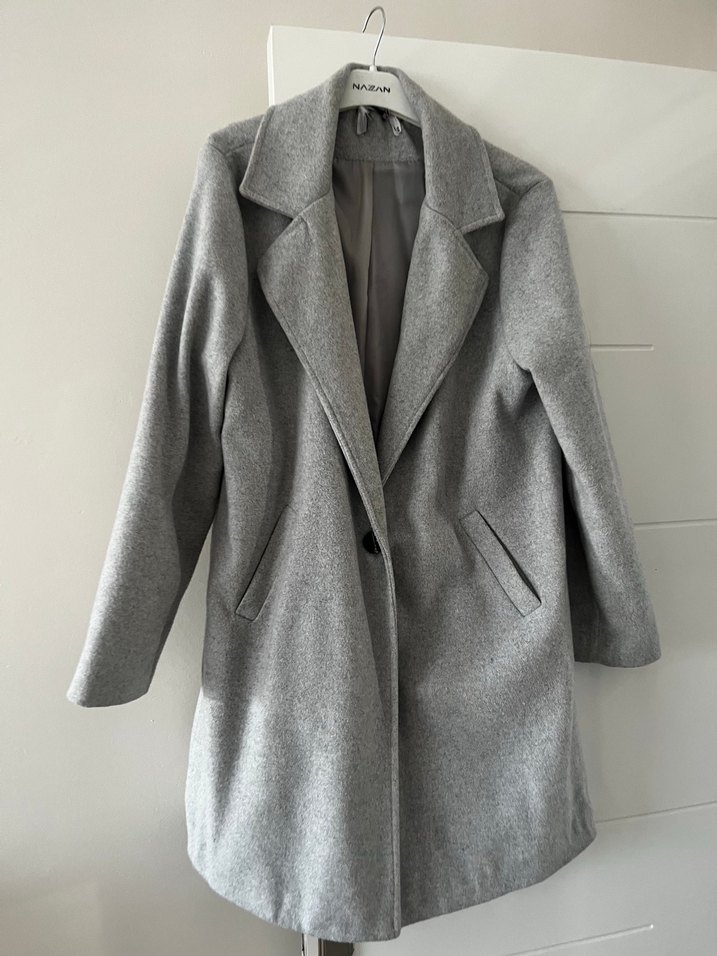Gri renkli kadın kaban, klasik yaka ve iki cep detayına sahiptir. Soğuk havalar için yumuşak ve sıcak tutan kumaştan üretilmiştir. Bir kaç defa giyildi tertemiz