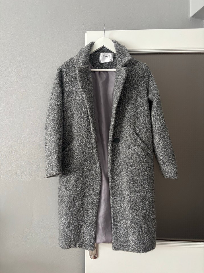 Gri renkli, yumuşak dokulu, uzun kadın kabanı. İç kısmı astarlı ve iki cep bulunur.Boyu 90 cmdir sorunsuzdır.