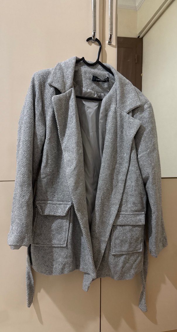 Gri Kadın Kaban Cepli