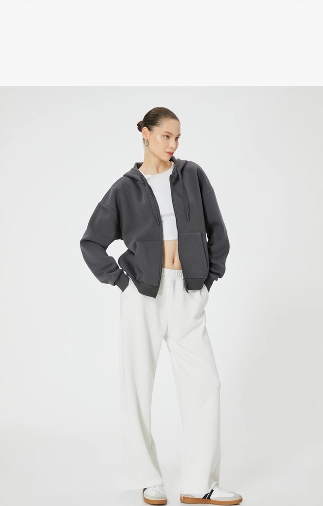Gri Kadın Kapüşonlu Rahat Eşofman Üstü