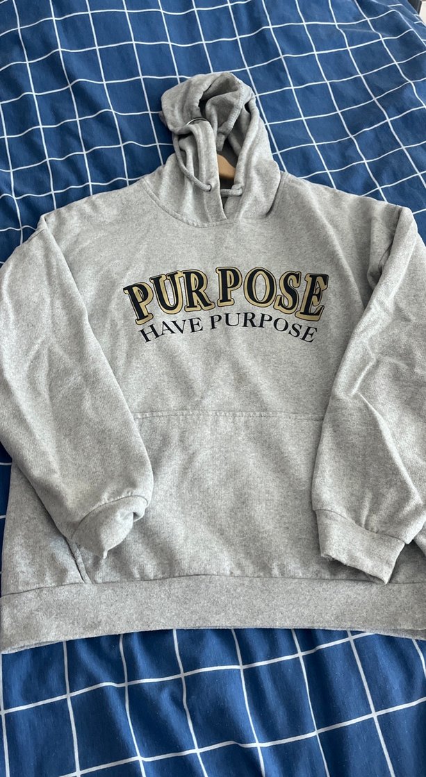 Gri renkli, kapüşonlu ve uzun kollu kadın sweatshirtü. Üzerinde "PURPOSE" baskısı bulunur. Rahat kesimi ve kabarık kol detaylarıyla günlük kullanıma uygundur.
