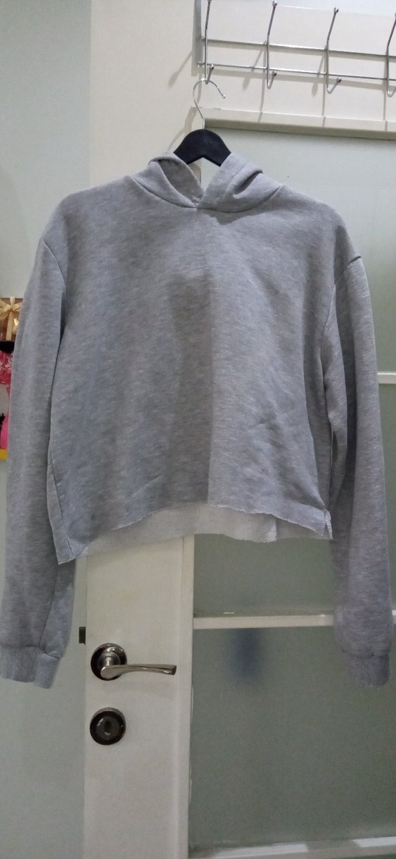 Gri renkli, uzun kollu ve kapüşonlu kadın sweatshirtü, yumuşak ve sıcak kumaştan üretilmiştir. Salaş kesim ve midi boydadır, rahat sokak stili için uygundur.