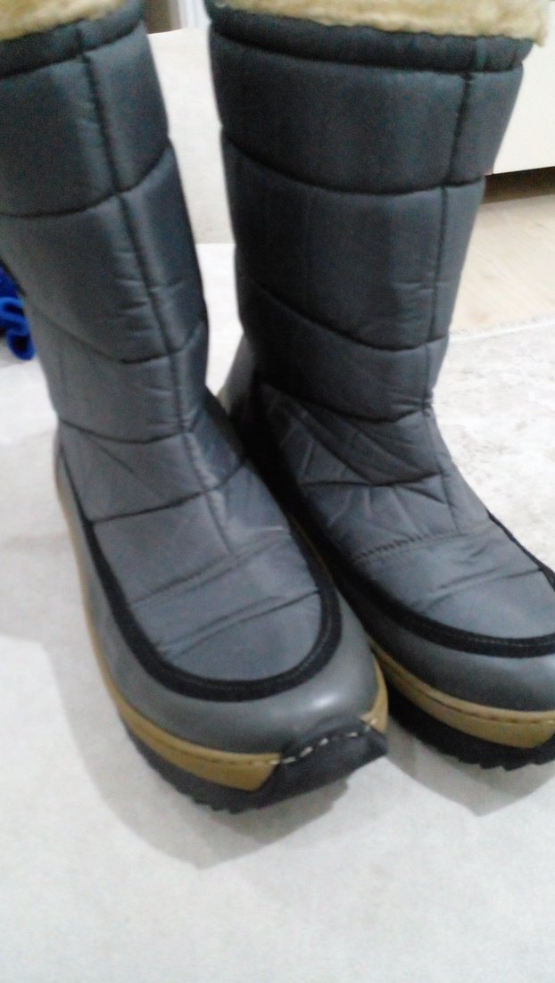 Gri renkte, tokalı kadin kayak botu. Kauçuk malzemeden üretilmiş, günlük kullanıma uygun rahat ve sokak stili tasarım.