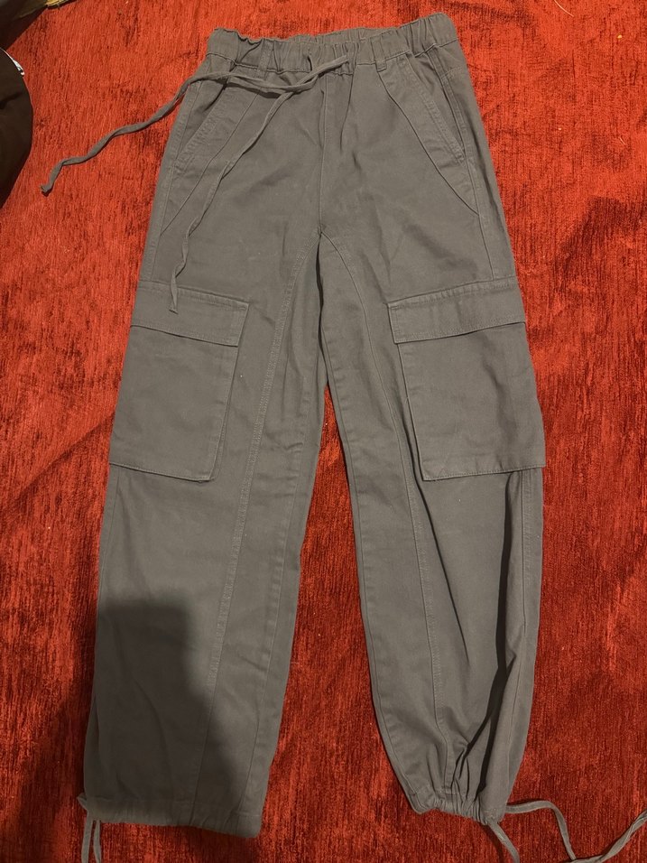 Gri, bol kesim kadın pantolon, cepli, yumuşak, rahat ve gündelik dış mekan kullanımı için uygun. Xs bedeni ama s beden uyumlu. Bir yıl önce aldım 3 defa giydim şimdi olmadığı için satıyorum.