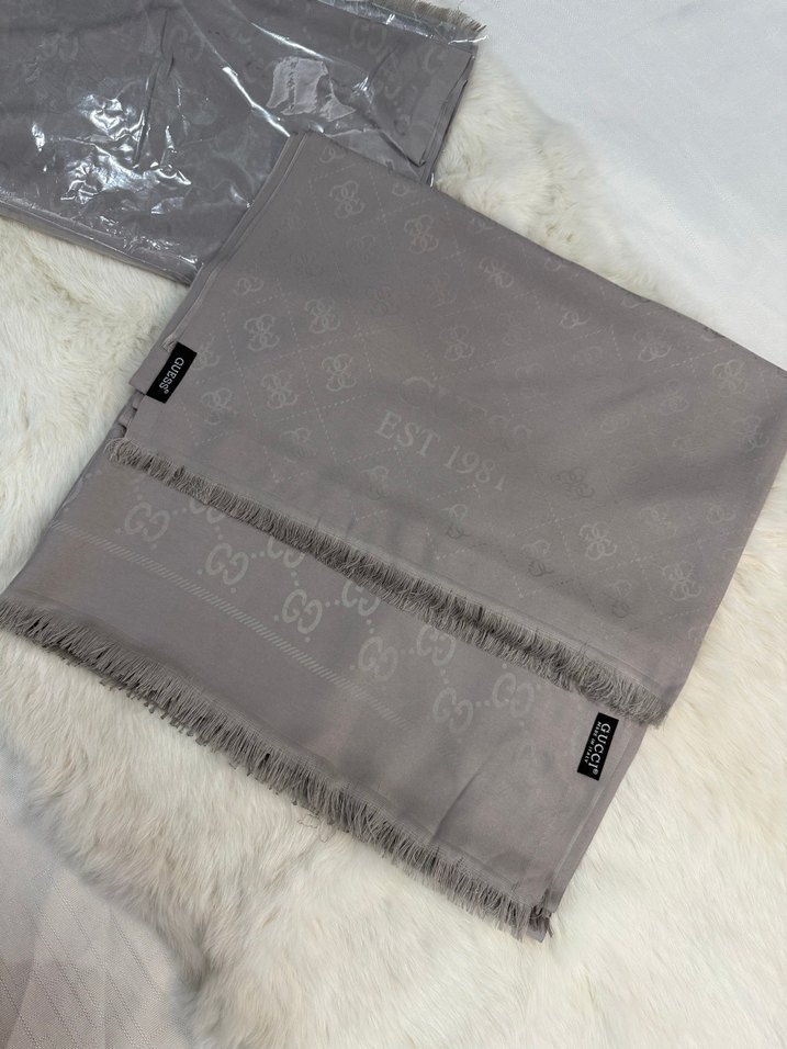Gri renkte, yumuşak sentetik kumaştan yapılmış, ince desenli ve detaylı kadın şalı, rahat ve sade bir sokak stili sunar. Gues ve Gucci model vardır hangisini isterseniz sipariş verebilirsiniz