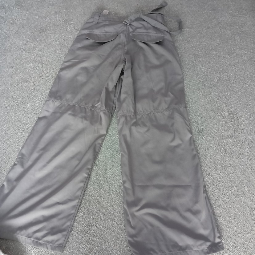 Gri renkte, kemerli ve salaş kesimli kadın kumaş pantolon. Sentetik yumuşak kumaştan, midi boy, outdoor ve athleisure tarzına uygun.