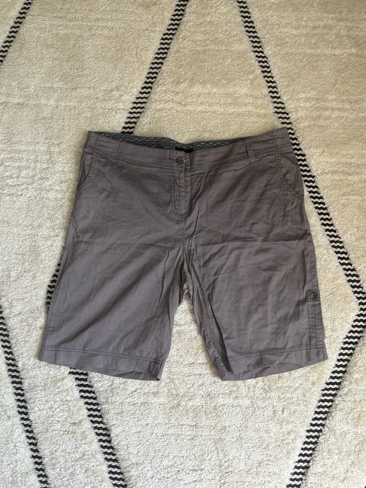 Gri keten kumaştan, bol kesim kısa Bermuda şort. Günlük kullanıma uygun, rahat ve sade tasarımlı, trend bir casual stil sunar.
